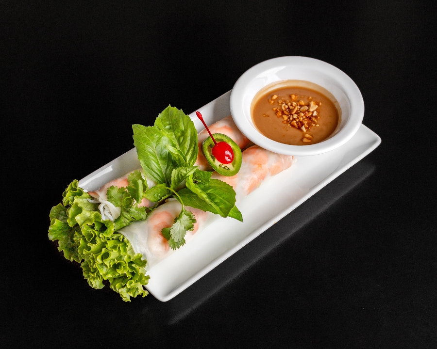 (2) vermicelli wrapped in a delicate rice paper with lettuce & basil. House sauce is a white wine vinaigrette specialty crafted to bring out brightness of the ingredients.